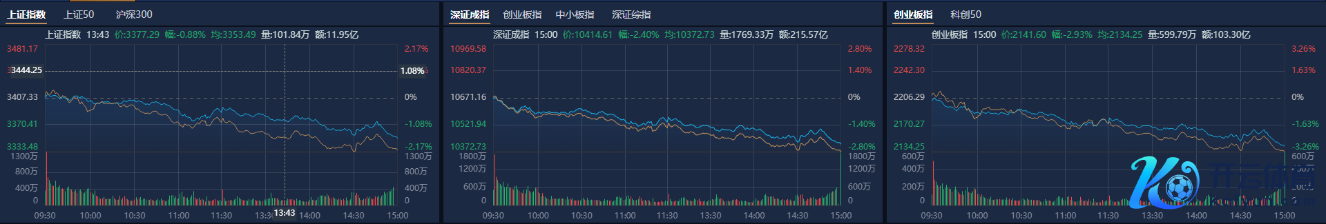 当天,三大指数颠簸下挫,南财金融结尾走漏,放手收盘,沪指跌1.63%,深证成指跌2.4%,创业板指跌2.93%。 盘面上,燃气板块逆势高潮,贵州燃气、首华燃气、长春燃气等涨停; 啤酒、饮料乳品板块高潮,海南椰岛、青岛啤酒等高潮; 饰品板块收红,潮宏基、曼卡龙等高潮; 着落方面,详细金融、计较机、非银金融、电子板块跌幅居前。 阛阓股票呈现跌多涨少的态势,4619只股票着落,705只股票高潮。 沪深两市成交额13458亿元,较上一交游日放量696亿元。 个股方面,东方钞票成交额居首尊龙凯时人生就是