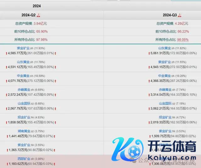 凭证2024年三季度的财报,黄金股ETF的合手仓组成中,A股以及港股的黄金股如山东黄金、紫金矿业、中金黄金等几个主要黄金矿产商,占了其合手仓的2/3。