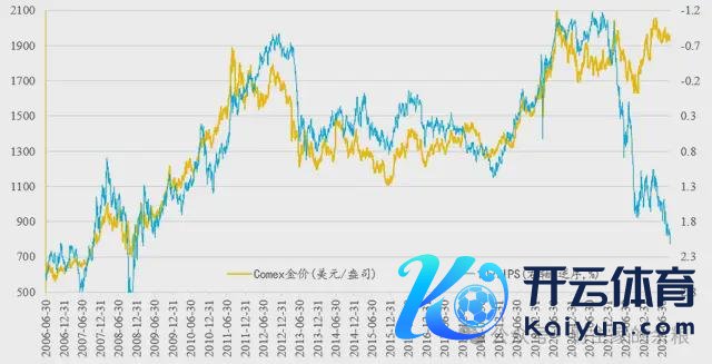 自2006年一直到2021年,Comex黄金价钱与好意思国中长期抗通胀债券(TIPS)的收益率密切接洽,两者基本呈负接洽接洽。