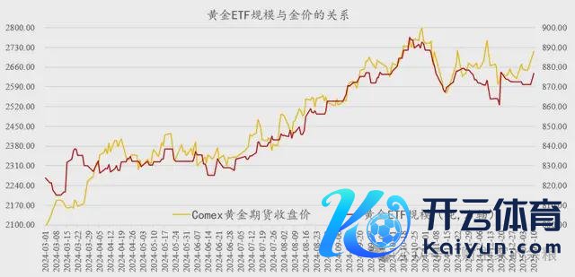 然则,跟着央行净购金畛域趋于镇定和下降,2024年4月驱动,黄金价钱再度与ETF合手仓量密切接洽,这一趋势合手续迄今——ETF合手仓量增则金价涨,ETF合手仓量减则金价跌。