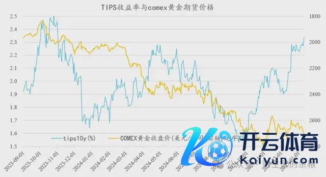 2023年年中之后,TIPS收益率-黄金价钱的逻辑接洽时而灵验、时而无效,但合座而言,两者存在如下接洽: