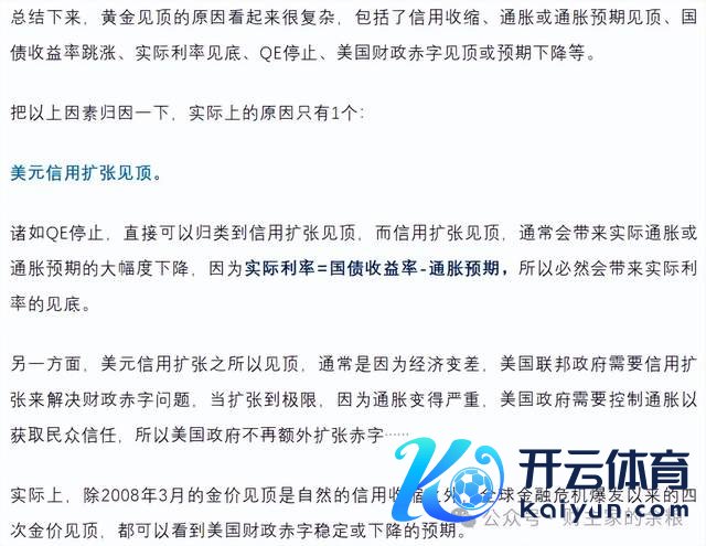 文中回来了夙昔20年中5次黄金价钱见顶的情况,终末得出的论断是: