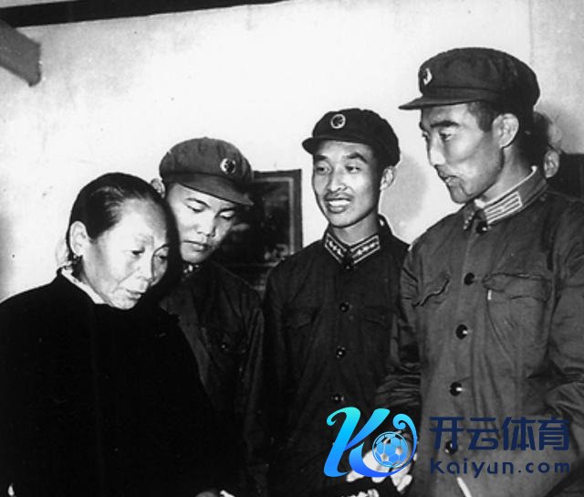 在黄继光也曾待过的连队里,战士们骄矜地拿出几张相片给公共看。相片上,一位老爷爷坐在黄继光的床边,抱着被子,眼里尽是泪水。还有一张相片,老爷爷举起右手,朝着黄继光的铜像谨慎地敬了个军礼。