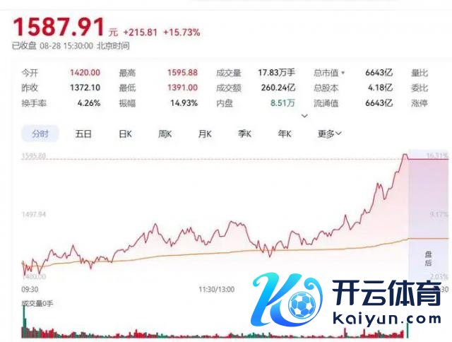 AI 芯片公司寒武纪股价暗暗摸到了 1587.91 元,不仅抢走了茅台抢占多年的" A 股第一高价股"头衔,市值一举冲破 6643 亿元,连带着首创东谈主陈天石以 1600 亿身家登顶江西首富。